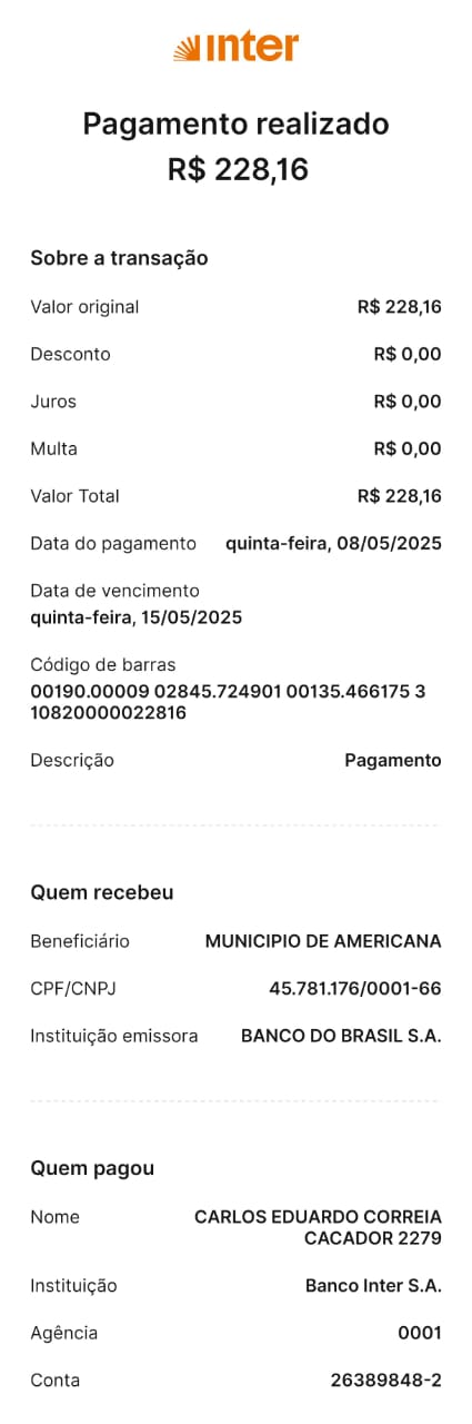 | 02/2025 | 1 | R$ 32,50 | 1 | R$ 225,00 | R$ 257,50 |